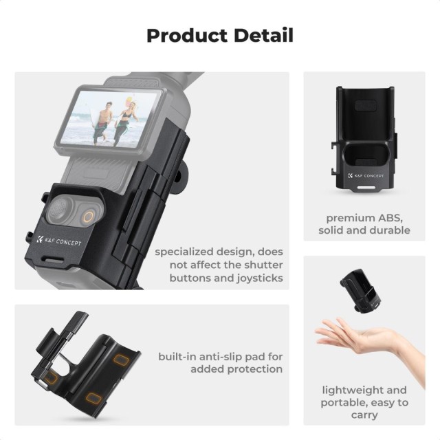 - * 【Speciálně navrženo pro OSMO Pocket 3】Prodlužovací adaptér K&F Concept je kompatibilní s DJI OSMO Pocket 3. Je lehký, odolný a pomáhá chránit Pocket 3 před poškrábáním, aniž by ovlivňoval nabíjení a provoz.