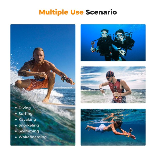 Rychle odnímatelný design: Odnímatelná hlavní jednotka umožňuje snadné vyjmutí fotoaparátu pro přehrávání, aniž byste se museli zabývat složitým šroubováním nebo montáží. Vysoká vztlaková síla: vztlak plovoucí rukojeti zajišťuje, že fotoaparát zůstane na hladině, takže se můžete uvolnit a soustředit se na pořizování krásných záběrů bez obav ze ztráty vybavení.