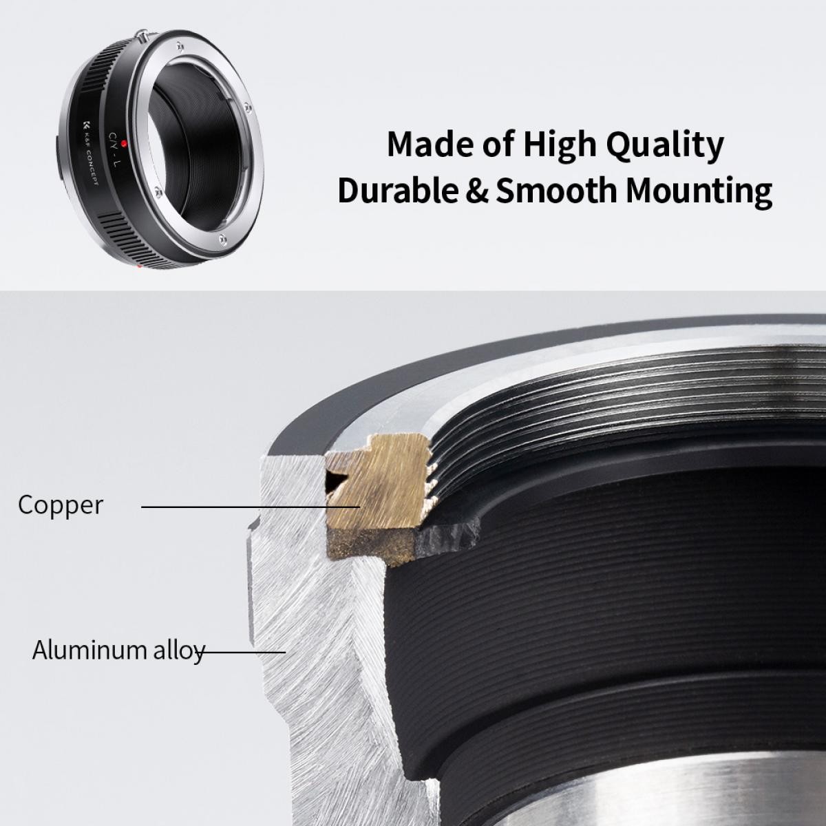 K&F Concept C/Y-L adaptér pro manuální ostření je kompatibilní s objektivy Contax/Yashica (C/Y) pro fotoaparáty s bajonetem L Mount.