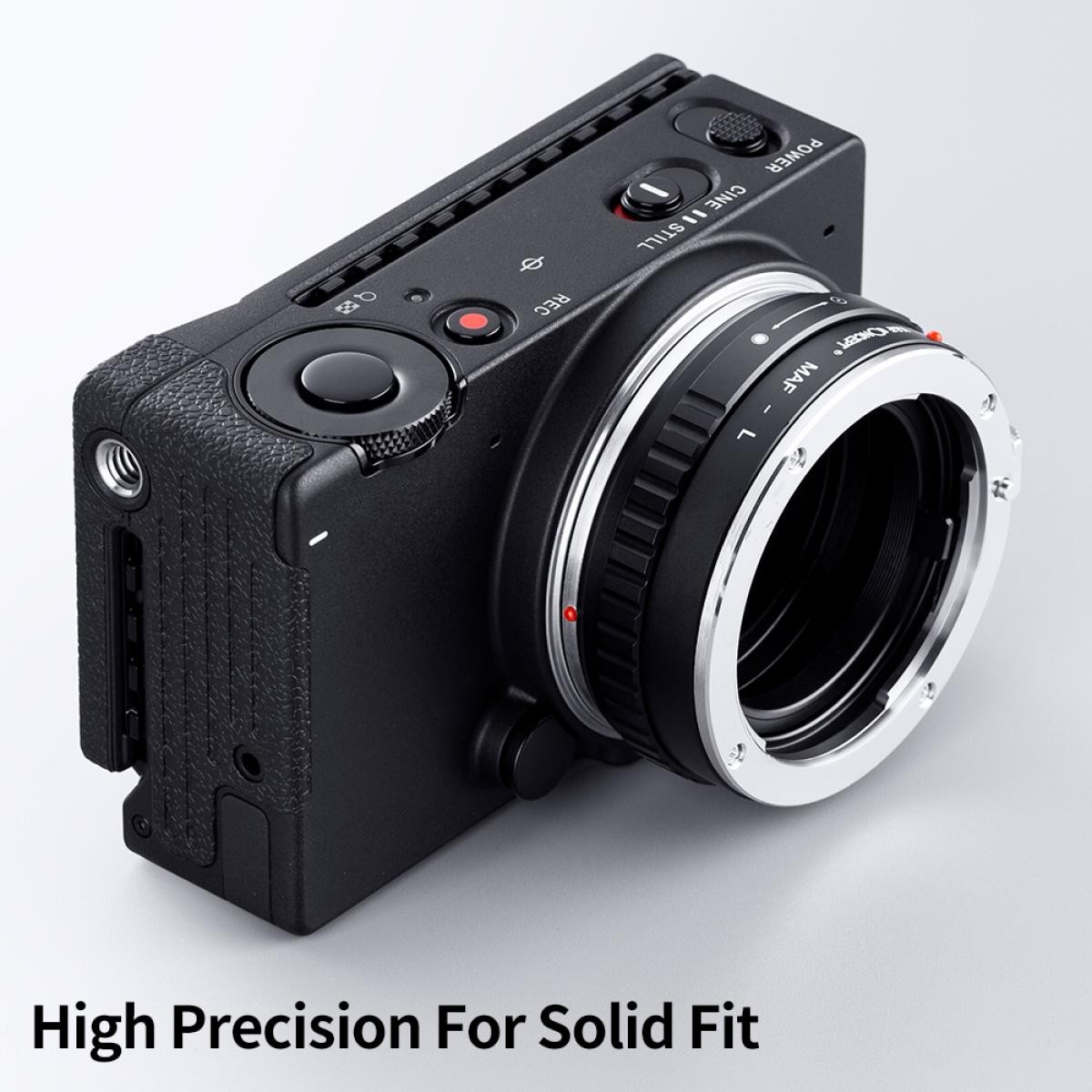 Adaptér objektivu K&F High Precision MAF-L umožňuje připevnit kompatibilní objektivy na fotoaparáty Panasonic/Sony s bajonetem L s plně manuálním ovládáním. Je vyroben z vysoce kvalitní mědi a hliníkové slitiny, což zajišťuje hladkou montáž, přesné vyrovnání a spolehlivý výkon.