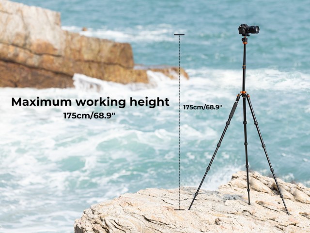 * 【JEDNODUCHÉ NASTAVENÍ】 5 sekcí trubkové nohy a maximální průměr je 25 mm; aretační knoflík spirálového typu umožňuje nastavit pracovní výšku během několika sekund; výška bez sloupku dosahuje 51'' a výška se 2 sekcemi středového sloupku je 67'', což usnadňuje fotografování ve stoje.