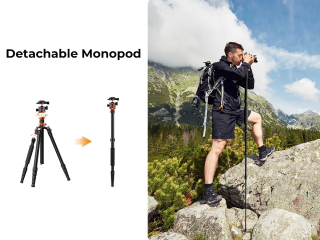 * 【Snímatelný monopod】 Lze jej proměnit v lehký monopod nebo samotnou hůl, aby vaše fotografování bylo rozmanitější.