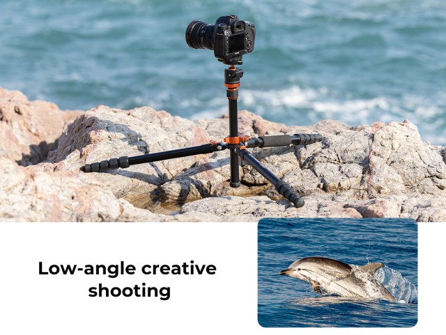 * 【Víceúhlové snímání】Pružinové samosvorné tlačítko pro nastavení úhlu nožní trubice, stačí stisknout a uvolnit a rychle nastavit úhel otevření a zavření tří nohou; může vám pomoci dosáhnout snímání z nejnižšího úhlu, makro snímání a dalších speciálních fotografií prostřednictvím obrácené středové osy."