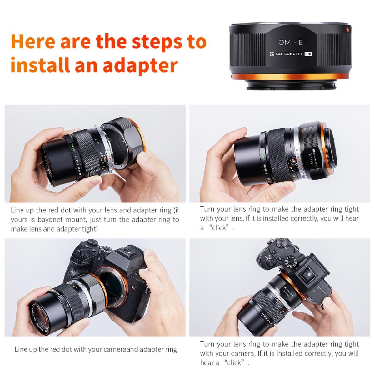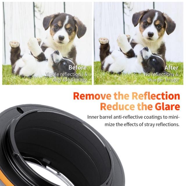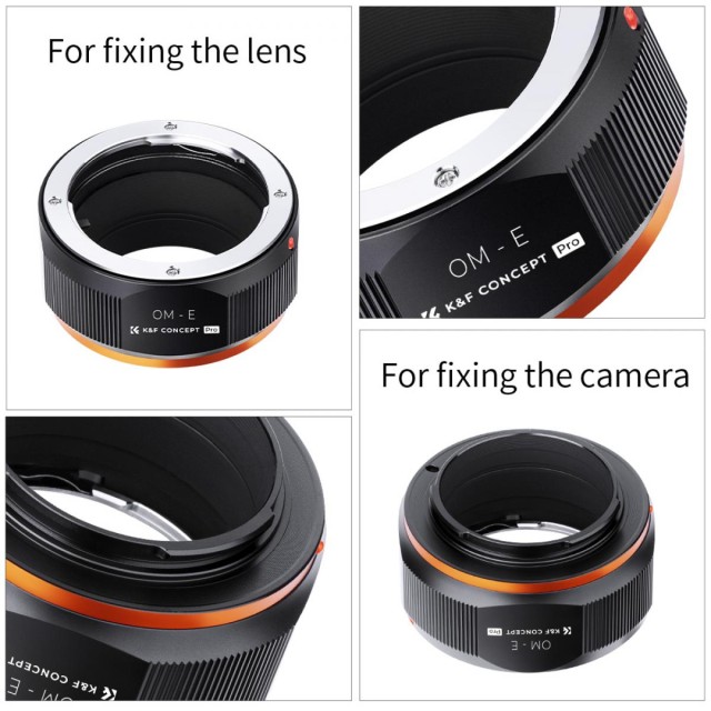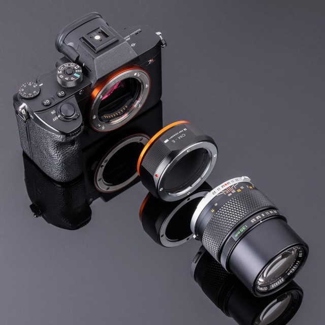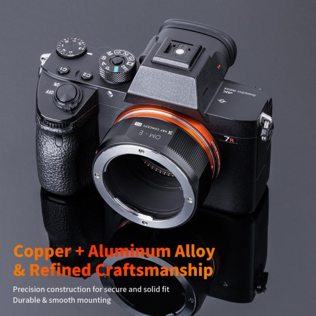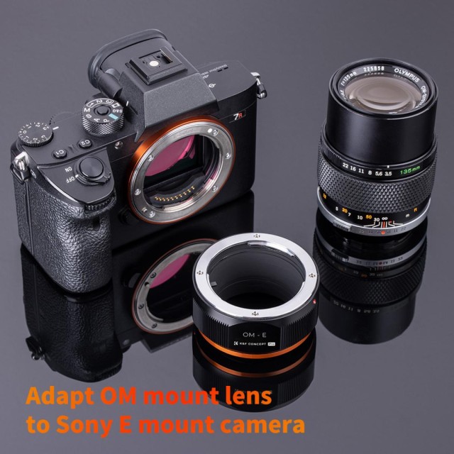 K&F Concept OM-NEX adaptér pro manuální ostření je kompatibilní s objektivy Olympus OM pro fotoaparáty s bajonetem Sony E-Mount.