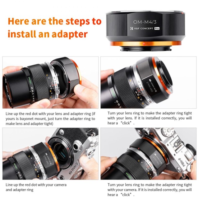 K&F Concept OM-M4/3 adaptér pro manuální ostření je kompatibilní s objektivy Olympus OM pro fotoaparáty s bajonetem Micro Four Thirds M4/3 Olympus Pen.