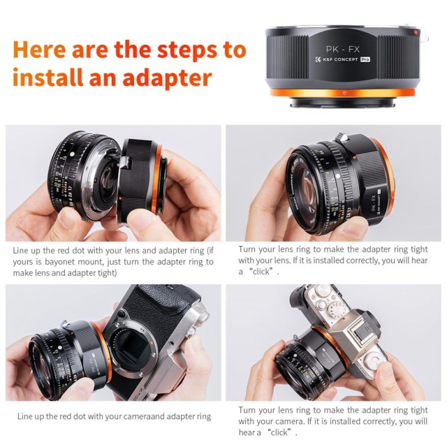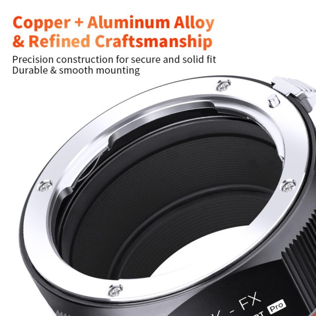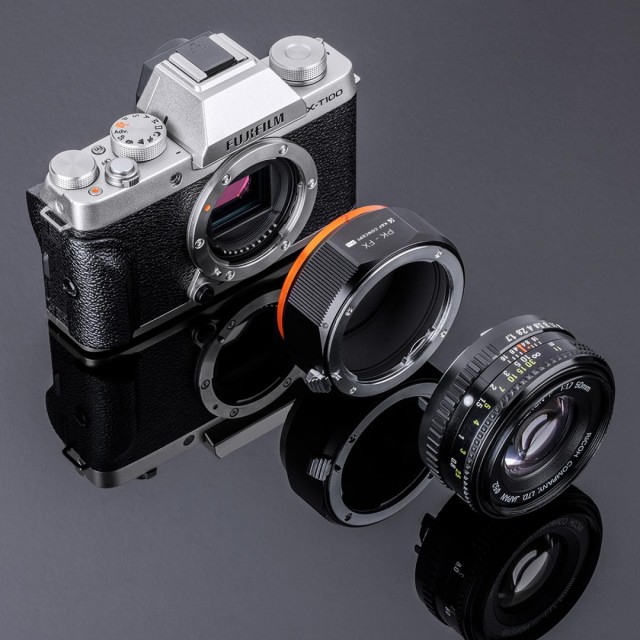 K&F Concept PK-FX adaptér pro manuální ostření je kompatibilní s objektivy Pentax PK pro fotoaparáty s bajonetem Fujifilm Fuji X-Series.