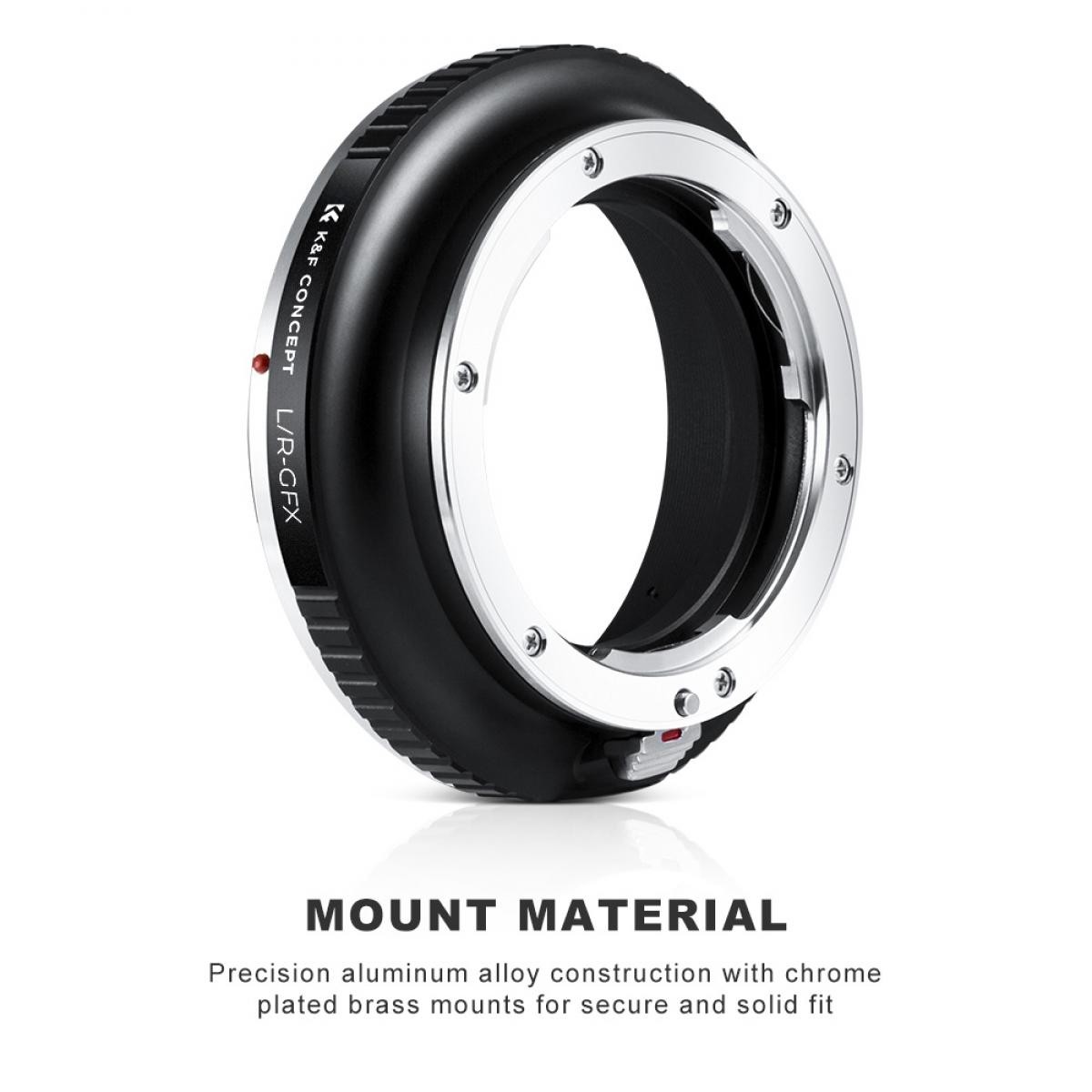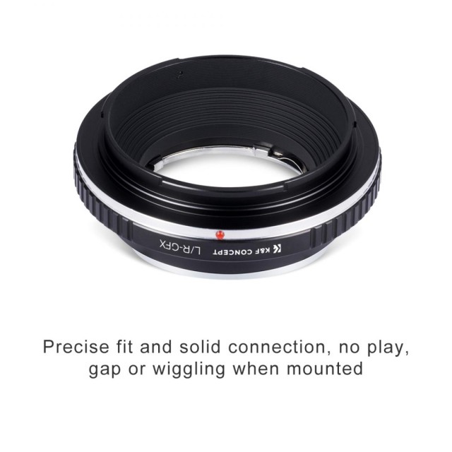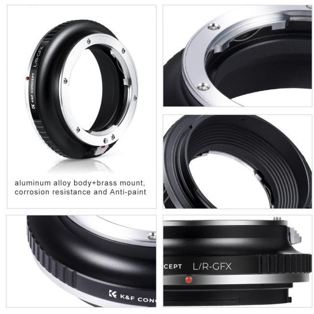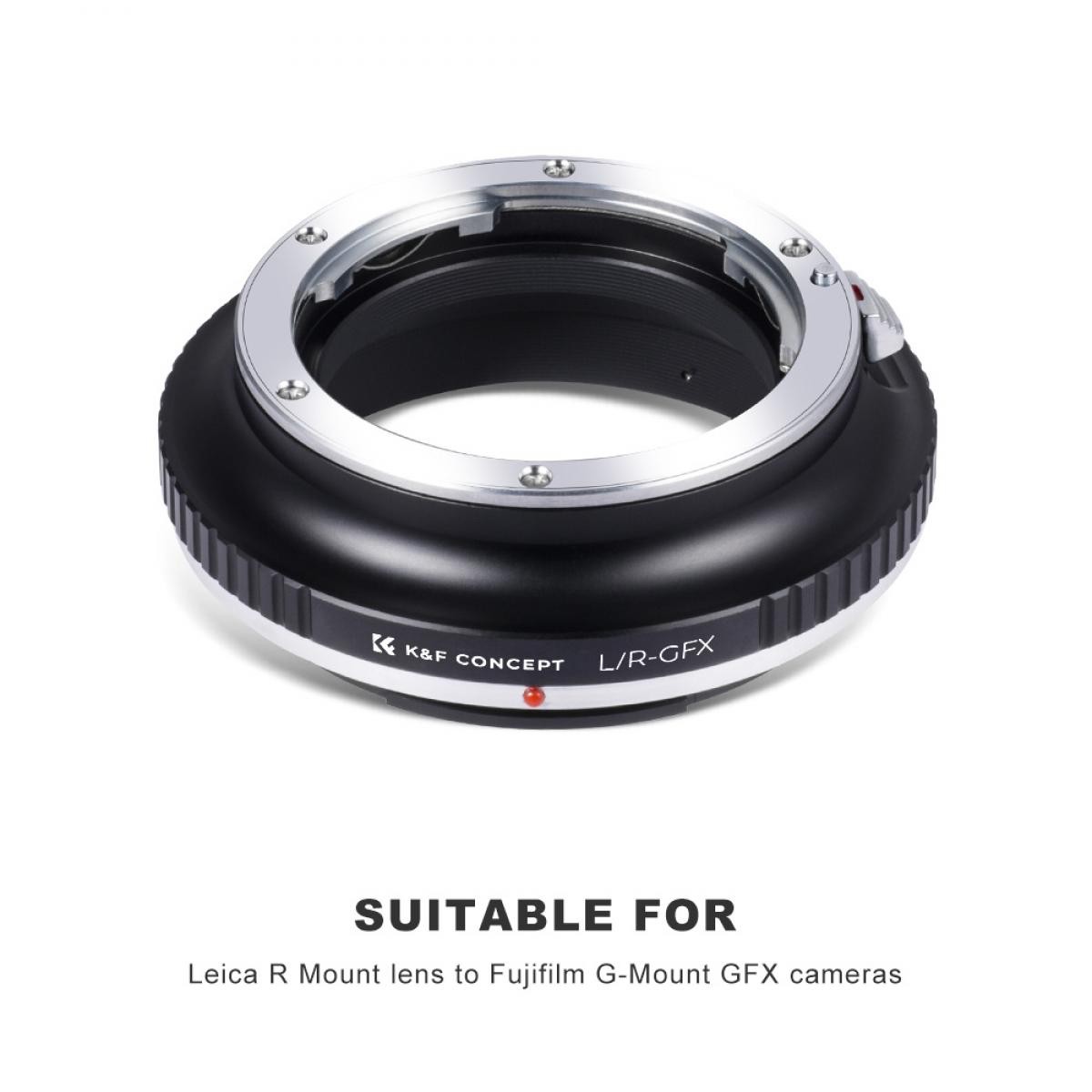 Adaptér K&F Leica R na Fuji GFX umožňuje připevnění objektivů Leica R na středoformátové fotoaparáty Fuji GFX. Nabízí odolnou celokovovou konstrukci a plynulý manuální provoz.