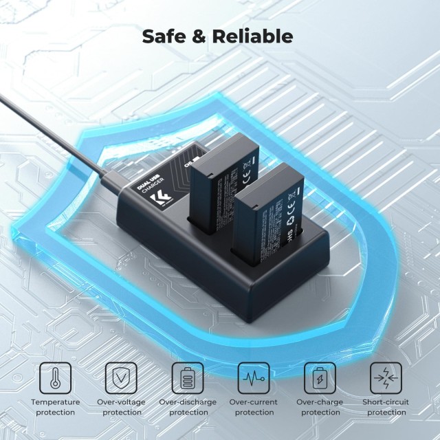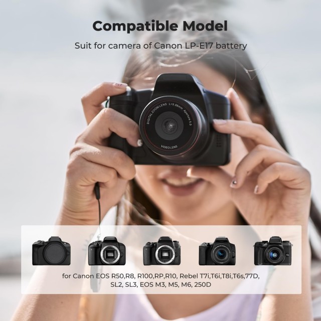 Prodlužte dobu fotografování s fotoaparátem Canon pomocí sady baterií K&F Concept LP-E17 1250 mAh a duální nabíječky. Tato tenká a kompaktní sada obsahuje dvě vysoce výkonné baterie a duální nabíječku USB-C/Micro B, která umožňuje současné nebo samostatné nabíjení pro efektivní pracovní postup a dlouhodobý výkon.