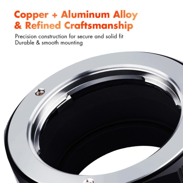 Adaptér K&F M15115 High Precision Lens Mount (MD-FX ) umožňuje použití objektivů Minolta MD/MC Mount SLR na bezzrcadlovkách Fujifilm řady X a nabízí tak bezproblémové spojení pro fotografy, kteří chtějí používat klasické objektivy s moderními fotoaparáty. Tento celokovový adaptér je vyroben z tvrzeného eloxovaného hliníku, což zaručuje odolnost a dlouhou životnost. Vnitřní strana je matně lakovaná pro snížení odrazu světla a zlepšení kvality obrazu.