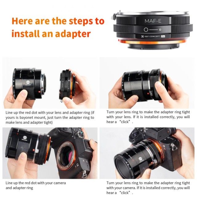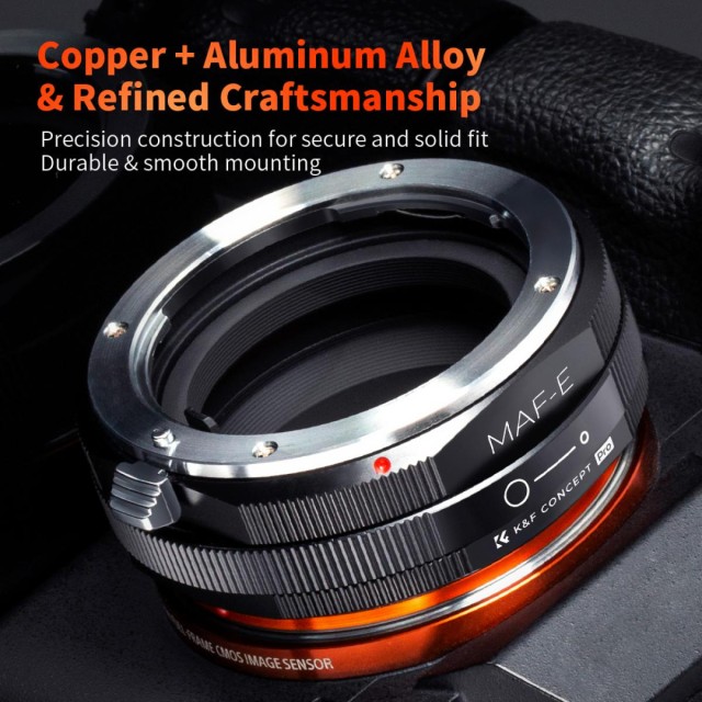 K&F Concept MAF-NEX adaptér pro manuální ostření je kompatibilní s objektivy Sony Alpha Minolta AF A-Type pro fotoaparáty s bajonetem NEX E-Mount.