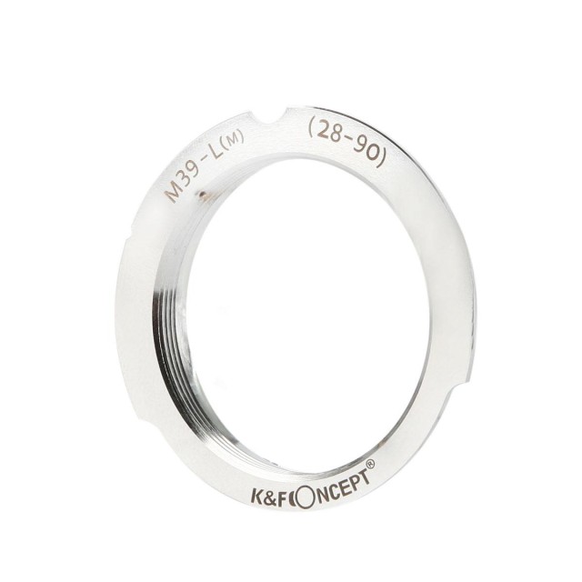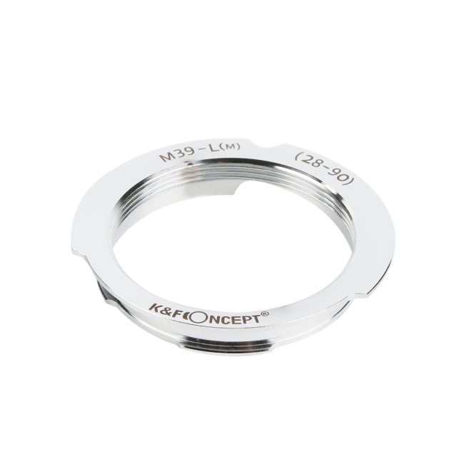 Adaptér K&F M39 28 mm/90 mm pro fotoaparáty Leica M umožňuje použití objektivů s bajonetem M39 na fotoaparátech řady Leica M. Je vyroben z odolné mosazi a poskytuje stabilní, přesné a plně manuální ovládání s podporou nekonečného zaostření.