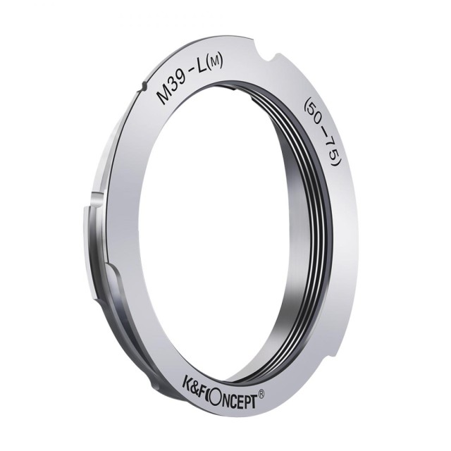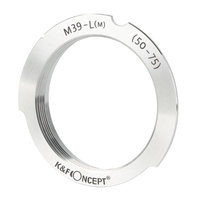 Adaptér K&F M39 50 mm/75 mm na fotoaparát Leica M umožňuje použití objektivů s bajonetem M39 na fotoaparátech řady Leica M. Je vyroben z mosazi a hliníku a poskytuje stabilní, přesné a plně manuální ovládání s podporou nekonečného zaostření.