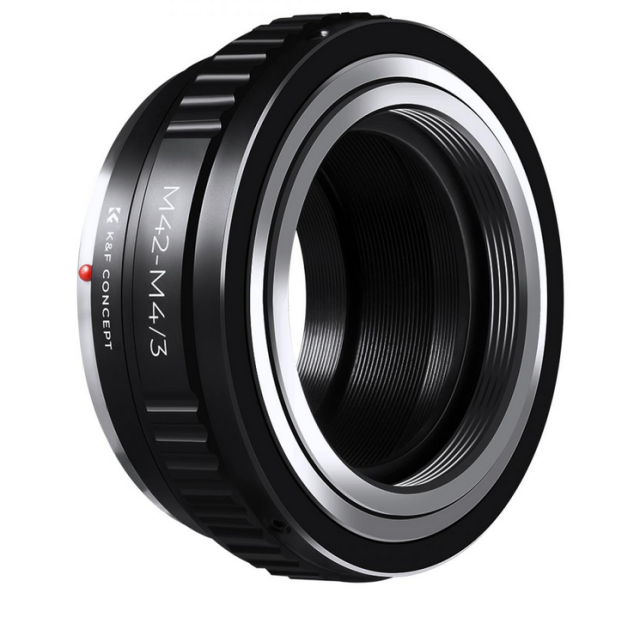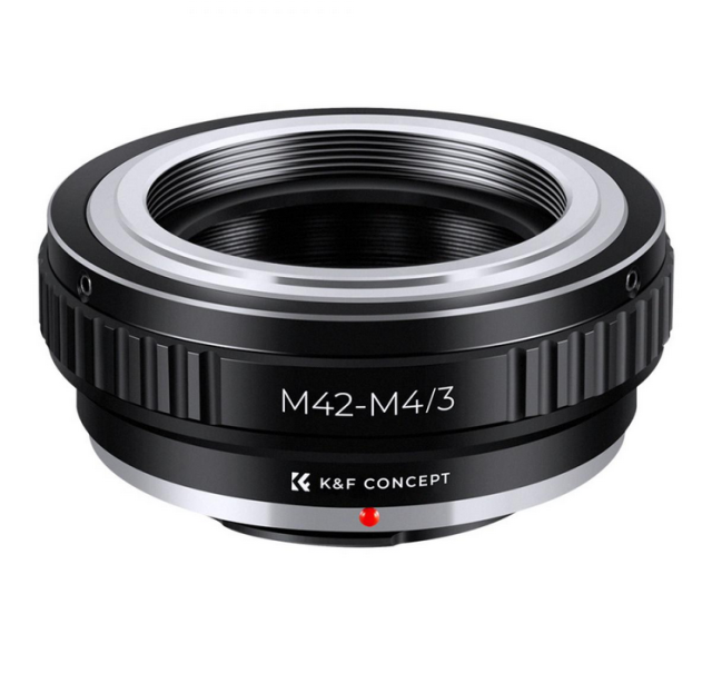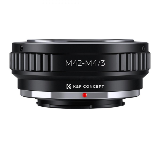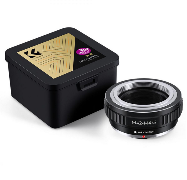 Adaptér K&F M42 Lenses to M43 MFT Mount Camera Adapter umožňuje používat objektivy s bajonetem M42 na tělech fotoaparátů s bajonetem Micro 4/3 (MFT). Tento adaptér je kompatibilní s širokou škálou fotoaparátů Micro Four Thirds od společností Panasonic, Olympus, JVC, DJI, Kodak a Blackmagic. Je vyroben z odolné mosazi a hliníku a zajišťuje stabilní a přesné manuální ovládání s podporou ostření na nekonečno. Pro těžké středoformátové objektivy se doporučuje použít držák teleobjektivu a stativ pro vyvážené snímání.