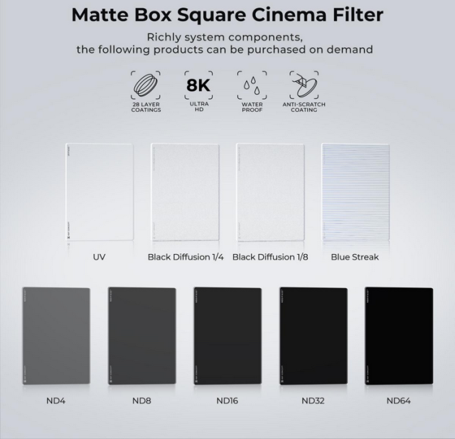 Vylepšete a ochraňte své profesionální filmové vybavení pomocí filtru K&F MCUV, univerzálního ochranného filtru o rozměrech 4 "x5,65", který je určen pro různé matné boxy, včetně těch od společností Tilta, SmallRig a dalších předních značek. Tento vysoce účinný filtr je nezbytný pro profesionální filmaře, kteří chtějí dosáhnout vynikající čistoty obrazu a detailů a zároveň chránit své objektivy před UV zářením.