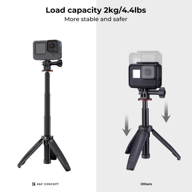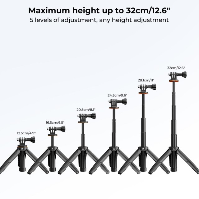 Držáky pro akční kamery Stojan na selfie tyč na stůl (malý rozměr) pro Gopro, Action a Insta Black Orange. Malý stativ pro telefon využívá rozšířenou pevnou konstrukci a protiskluzový silikon. Upravená trubka má zabudovaný gumový kroužek tlumící nárazy, díky čemuž je celá roztažená trubka stabilnější a pevnější. podložka ve spodní části pro stabilnější oporu.