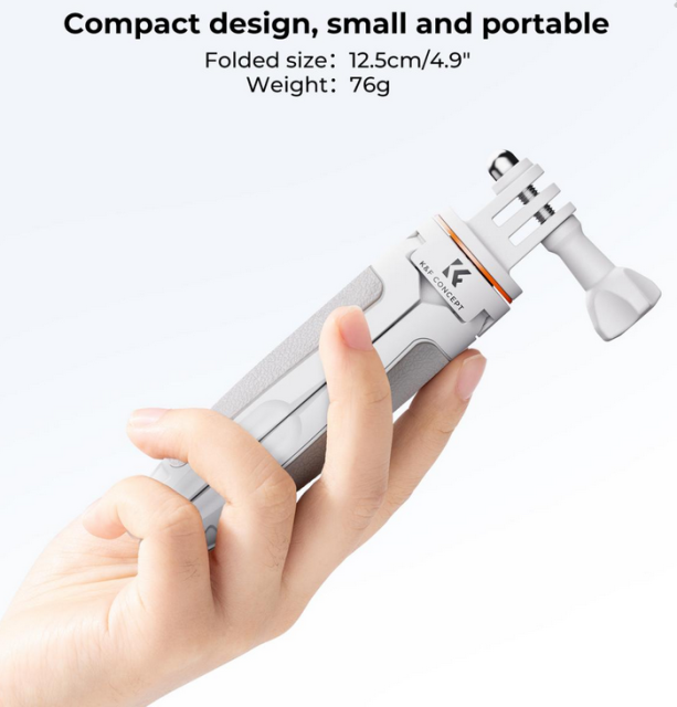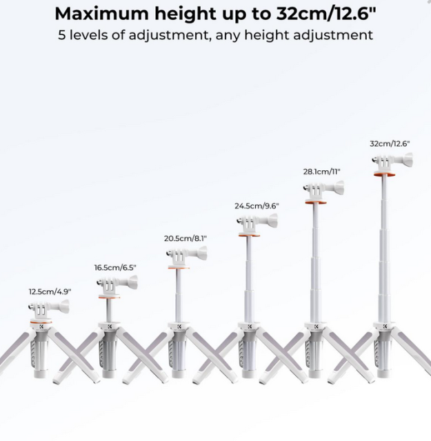 Stativ pro chytré telefony K&F MS03 v oranžovo-šedé barvě je všestranné a přenosné řešení pro vaše fotografické a videografické potřeby. Díky maximální výšce 32 cm a 5sekčnímu nastavení nohou jej můžete snadno nastavit na požadovanou výšku. Tato stativová hlava podporuje nosnost 2 kg, takže je vhodná pro zařízení GoPro, DJI Osmo Action a Insta 360. Její vestavěný pryžový kroužek tlumící nárazy zajišťuje stabilitu a pevnost, zatímco rozšířená pevná konstrukce a protiskluzová silikonová podložka ve spodní části poskytují lepší oporu. Tento stativ váží pouhých 67 g, je snadno přenosný a ideální pro cestování a natáčení v přírodě.