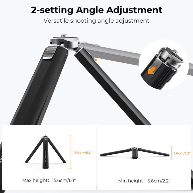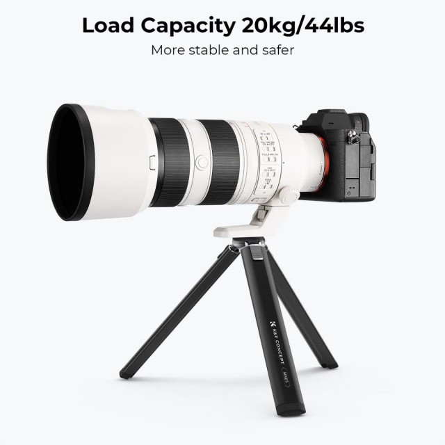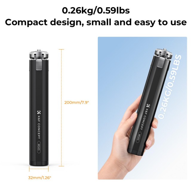 K&F MS05 je lehký a odolný kovový mini stativ pro telefony a fotoaparáty. Disponuje 2stupňovým nastavením výšky, 1/4" šroubovým rozhraním s robustní nosností 20 kg a protiskluzovým designem pro stabilní podporu při jakémkoli fotografování.