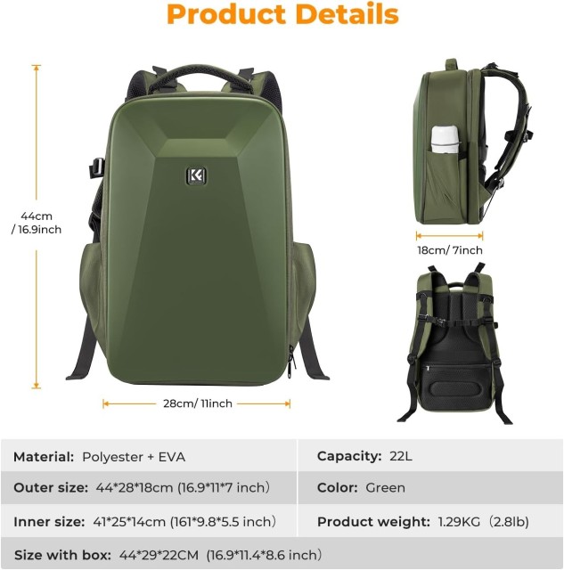 Batoh na fotoaparát K&F Concept, velká vodotěsná brašna na fotoaparát s 15-15,9palcovou přihrádkou na notebook, pevné pouzdro na digitální zrcadlovku