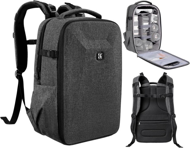 Tento multifunkční batoh na fotoaparát s pevnou skořepinou je určen pro různé značky digitálních zrcadlovek / zrcadlovek / bezzrcadlovek. Vyjímatelné modulární vložky slouží jako individuální přepážky pro různé fotoaparáty, blesky a objektivy. V zadní kapse je přihrádka na notebook, která pojme až 15,6palcový notebook. Přední, plně otevřená klopa s tvrdou skořepinou, která chrání fotoaparát před nárazy a poškrábáním. Brašna na fotoaparát se 2 vnitřními kapsami na příslušenství pro uložení kabelů, SD karet a powerbanky. na zadní straně 1 skrytá kapsa na zip pro telefon, peněženku a další drobnosti. Držák stativu je vybaven bezpečným popruhem na jedné straně brašny. na druhé straně je 1 kapsa poskytující prostor pro deštník nebo láhev s vodou.