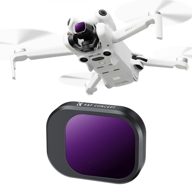 Filtr K&F Concept ND1000 pro DJI Mini 4 Pro poskytuje výkonné 10stupňové snížení světla pro extrémní jas, což jej činí ideálním pro letecké fotografie s dlouhou expozicí. Je vyroben z optického skla HD AGC a pokročilých vícevrstvých povlaků, což zajišťuje plynulé pohybové efekty, přesné barvy a výkon bezpečný pro gimbal.