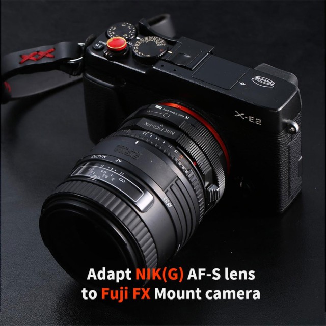* 【Funkce】Pomocí tohoto adaptéru můžete připojit objektivy Nikon s bajonetem G/F/AI/AIS/D/AF-S k bezzrcadlovkám Fujifilm řady X s bajonetem X FX. Na tomto adaptéru můžete ručně nastavit clonu pro svůj objektiv Nikon (G).