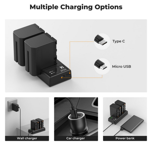 Široká kompatibilita: Baterie NP-F970 je plně kompatibilní s originálními fotoaparáty a nabíječkami Sony a je vhodná pro více modelů včetně NP-F960, NP-F950, NP-F930, NP-F770, NP-F750 a NP-F550. Bez problémů funguje s videokamerami, jako jsou HXR-NX5R, HXR-NX100, HXR-MC1500C, HXR-MC2500, HDR-FX1000E, a různým fotografickým příslušenstvím, jako jsou světla, monitory a motorizované posuvníky.
