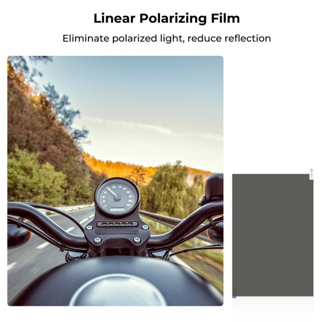 Polarizační fólie K&F Concept 300 × 200 mm poskytuje výjimečný optický výkon díky speciálně vyrobené optické fólii Nisshin, která nabízí vysokou propustnost v rozsahu 380–700 nm nepolarizovaného světla a působivou polarizační účinnost 99,99 %. Tato lineární polarizační fólie, navržená pro přesné aplikace, zlepšuje kontrast a snižuje odlesky na malých displejích, jako jsou palubní desky motocyklů, elektronické hodinky a kompaktní obrazovky. Je také vhodný pro vzdělávací a experimentální použití, včetně studií dvojlomnosti, rozptylu světla, polarizace a odrazu.