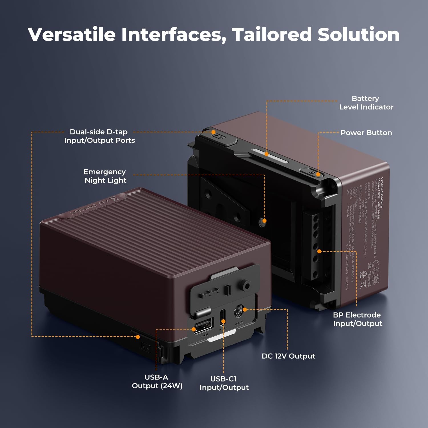 Rychlé nabíjení PD 100 W: Lithiová baterie V-Mount s vysokou kapacitou 99 Wh, 6700 mAh/14,8 V, obousměrným rychlým nabíjením PD 100 W poskytuje energii pro delší natáčení videa a je ideální pro fotografy a kameramany