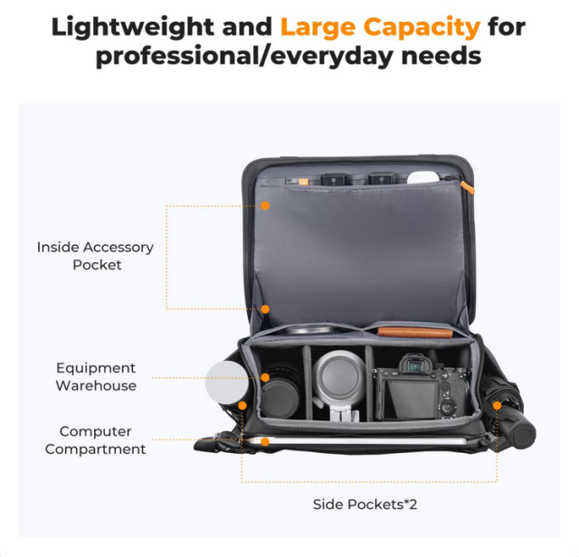 Brašna K&F Sling Bag 10L U10 kombinuje styl a funkčnost díky prostornému designu, přizpůsobitelným přihrádkám a několika kapsám na příslušenství. Je ideální pro přenášení fotografického vybavení, zařízení a nezbytných věcí, má také kapsu na 13" MacBook Pro a vyhrazený prostor pro malý stativ.