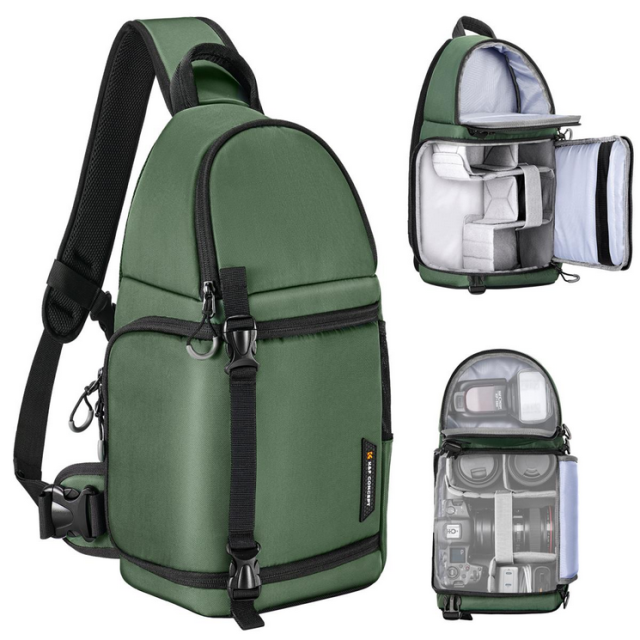 Brašna K&F Sling Bag 10L Urban Wander 02 (Green) je univerzální, tenká a odolná brašna na fotoaparát navržená pro rychlý přístup a bezpečné uložení digitální zrcadlovky, bezzrcadlovky, objektivů a příslušenství, takže je ideální pro cestování a fotografování v přírodě.