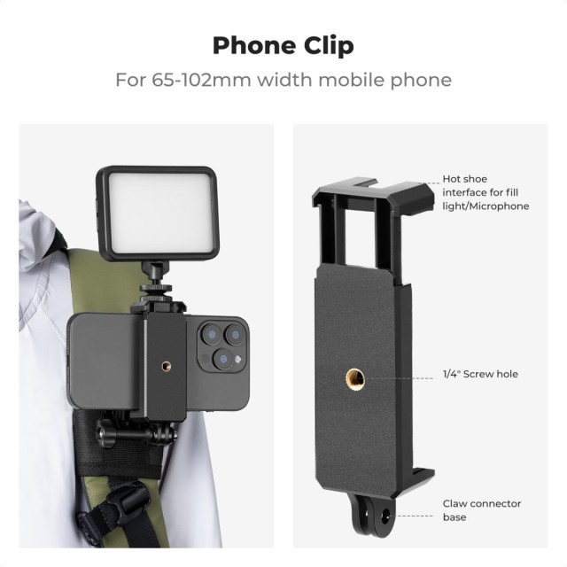 K&F Concept Backpack Belt Shoulder Strap Mount kompatibilní s GoPro Hero 13/12/11/10/9/8/7/6/5/4 Black, Session, vhodný pro DJI Osmo Action 5 Pro/4/3 a další akční kamery, 360° rotace. Na držáku je základna s 360° rotací, poskytuje různé úhly natáčení, umožňuje otáčet kamerou a vytvořit dokonalý záběr. Nainstalujte akční kameru, poté ji vložte do základny držáku, přilepte ji na ramenní popruh a otočením nastavte úhel pro zachycení jedinečných perspektiv, konstrukce s rychloupínací sponou, snadná výměna zařízení.
