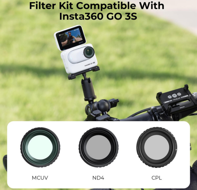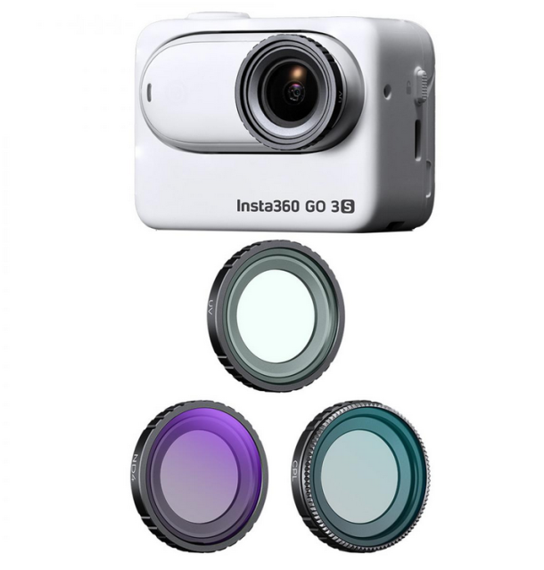 Sada filtrů K&F UV+CPL+ND4, určená pro akční kamery Insta360 GO 3S, obsahuje vícevrstvé filtry, které chrání objektiv a zlepšují kvalitu obrazu tím, že snižují odlesky, zamlžení a regulují světlo.