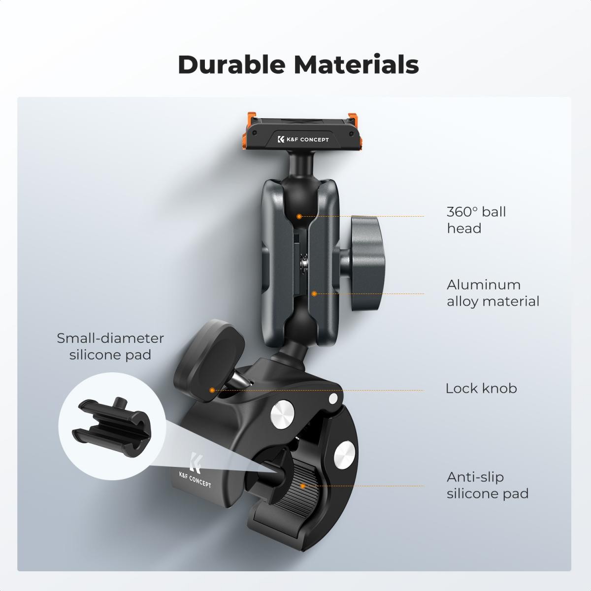 Tento rychloupínací svěrkový držák od K&F Concept slouží pro připevnění příslušenství. Můžete ho využít například jako klip na řídítka kola nebo motocyklu.