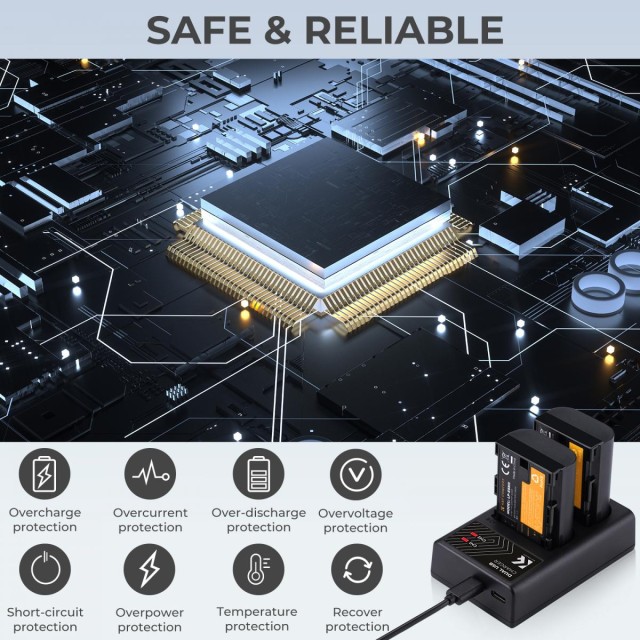 - * 【Bezpečnostní inteligentní ochrana】 Duální nabíječka LCD přesně zobrazuje stav nabíjení baterie, proces nabíjení pomocí inteligentních čipů lépe chrání baterii před přebíjením, vysokou teplotou, nadproudovou ochranou, ochranou proti přepětí, ochranou proti zkratu
