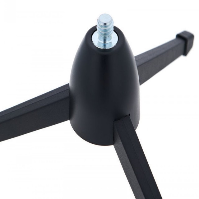 Lacný, praktický stolový mikrofónový stojan na profesionálne použitie. Stabilná plastová základňa so skladacími ľahkými plastovými nohami a 3/8" závitom.