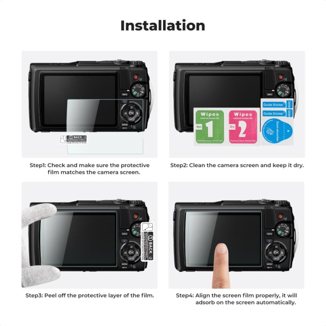 Tyto ochranné fólie jsou speciálně navrženy pro fotoaparáty Olympus TG-7, TG-6, TG-5 a TG-4. Balení obsahuje 3× ochranné sklo na displej a 3× kryt sáněk pro přesnou instalaci bez vzduchových bublin.