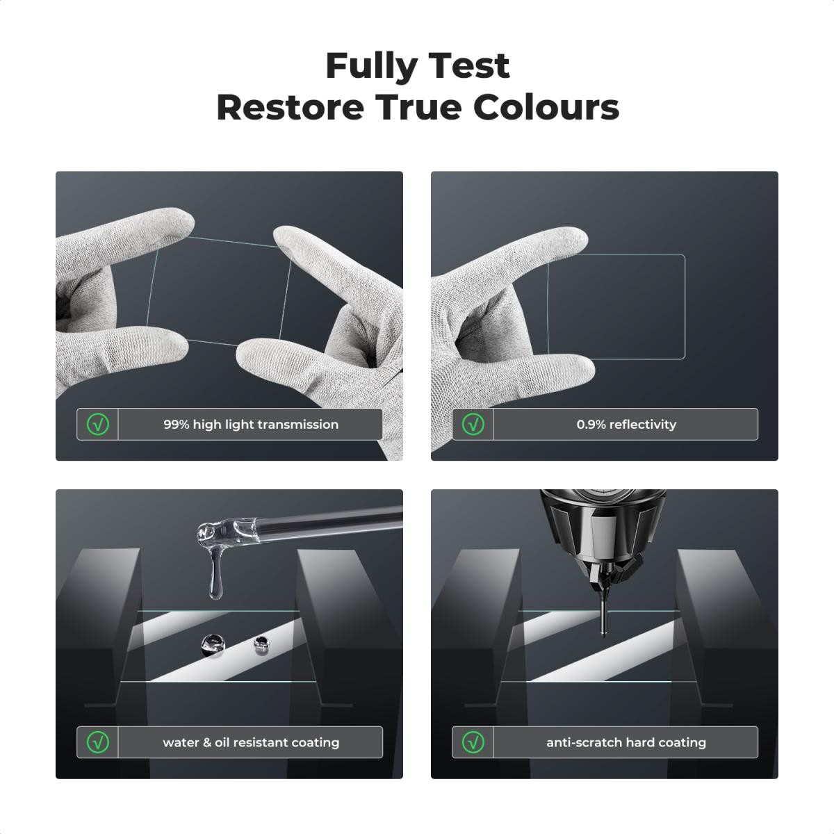 S průhledností 99,99 % HD zachovává ochranné sklo původní kvalitu obrazu. Hydrofobní povrchová vrstva odpuzuje otisky prstů a zajišťuje, že displej zůstává citlivý na dotyk.