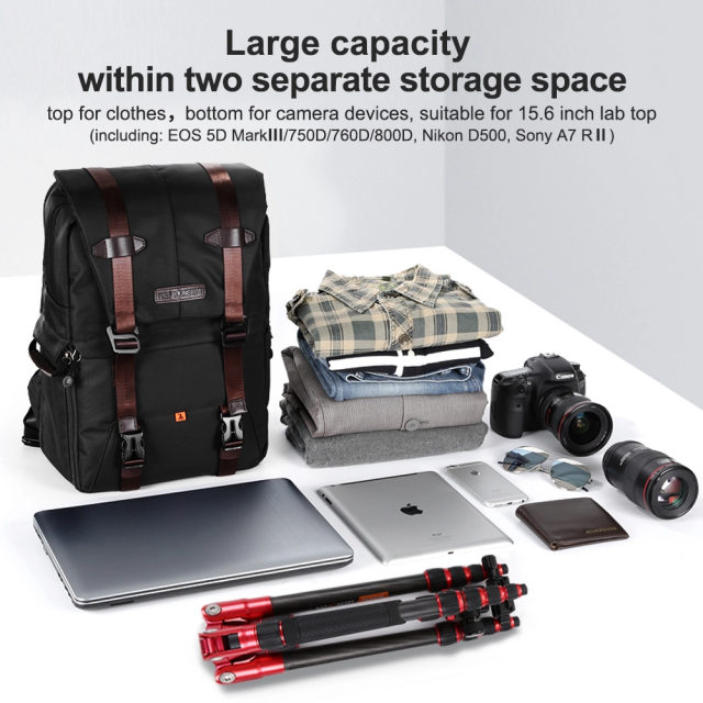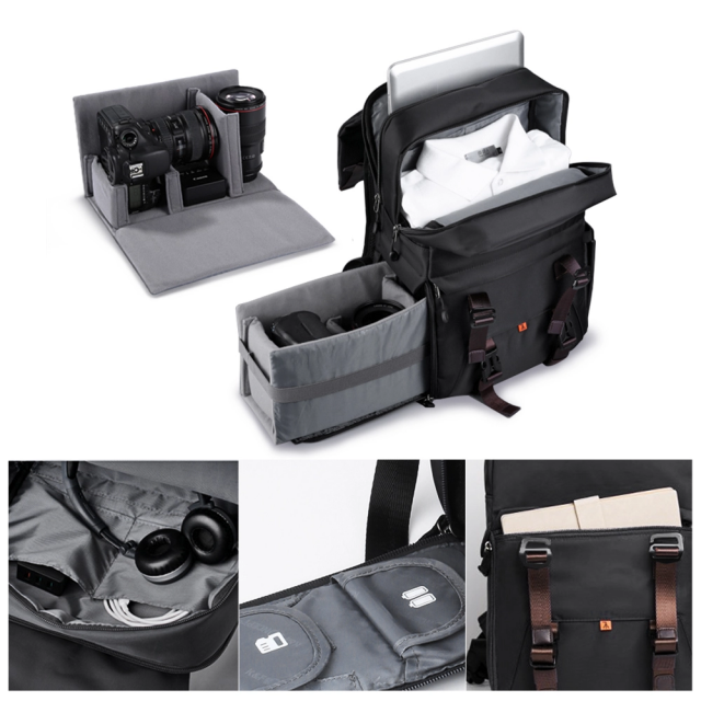 Velkokapacitní brašna pro fotoaparát, 2 objektivy a 15,6"" notebook. Balení obsahuje: 1 x batoh na fotoaparát, 1 x vodotěsná pláštěnka