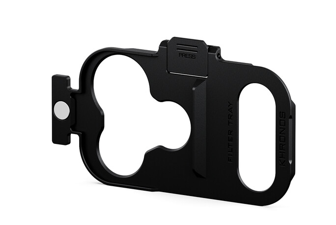 Zásobník se zasune přímo do speciálního slotu na pouzdře Khronos a bezpečně se tam zajistí. Vestavěná bezpečnostní spona zajišťuje, že zásobník během používání nemůže náhodně vyklouznout, a to ani v dynamických podmínkách natáčení, jako jsou ruční rigy, držáky do auta nebo gimbaly.