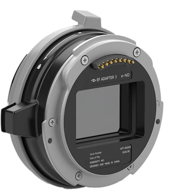 Montážní adaptér Kinefinity EF 3 s e-ND (A230-003-01) je určen pro všechny kamery KineMOUNT. Uzamčení ve směru hodinových ručiček + aktivní západka, výměna za provozu, automatická kalibrace barev, ovládání kolečkem – bez matné skříňky, bez posunu IR. Ideální pro samostatné operace, gimbal, dokumentární filmy.