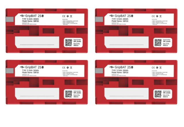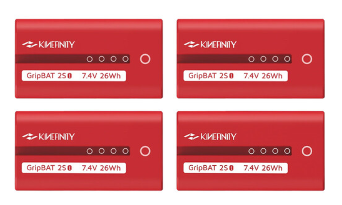 Sada Kinefinity GripBAT 2Si 4-Pack (A941-201-02) obsahuje 4 baterie Sony L-Series s kapacitou 3500 mAh / 26 Wh v červené/bílé barvě. O 75 % vyšší kapacita než NP-F550, 5 A / 40 W nepřetržitý proud, 4 LED indikátory, plná ochrana. Ideální pro hybridní desku MAVO Edge, monitory, světla – 90 minut plného nabití pomocí PD Hybrid Dual Charger.