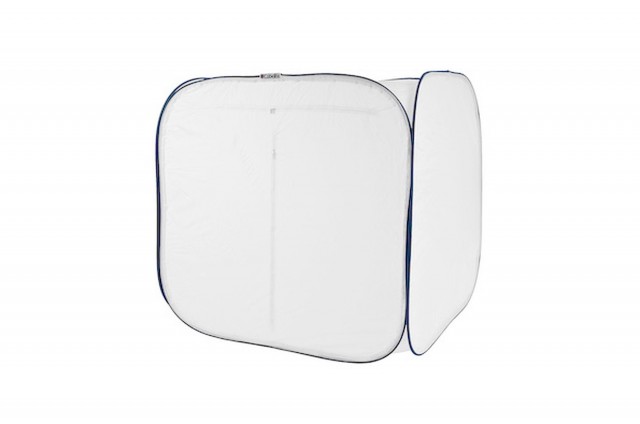 The Cubelite allows the photographer to control the lighting of products, minimizing shadows and isolating the subject from the background. It's never been easier to take quick and crisp product shots on location or in the studio simply set up the Cubelite, place lights on the outside and your good to go. The Cubelite has been enhanced in a number of ways so as to improve its utility: • Background clips mounted in the roof for additional height. • Open base for even floor surface, easier to fold and enables positioning of cube over immoveable items e.g. plants. •Front opens to edge of Cubelite for wider viewing angles.