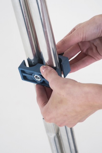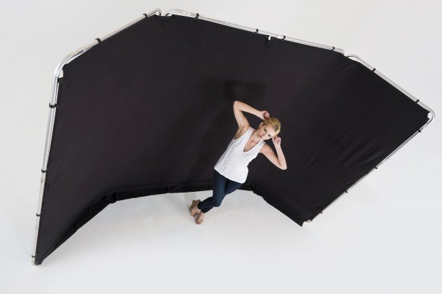 Panoramatické pozadí se třemi hliníkovými konstrukčními díly, díky nimž nebudete k upevnění pozadí potřebovat žádné držáky ani stativy.