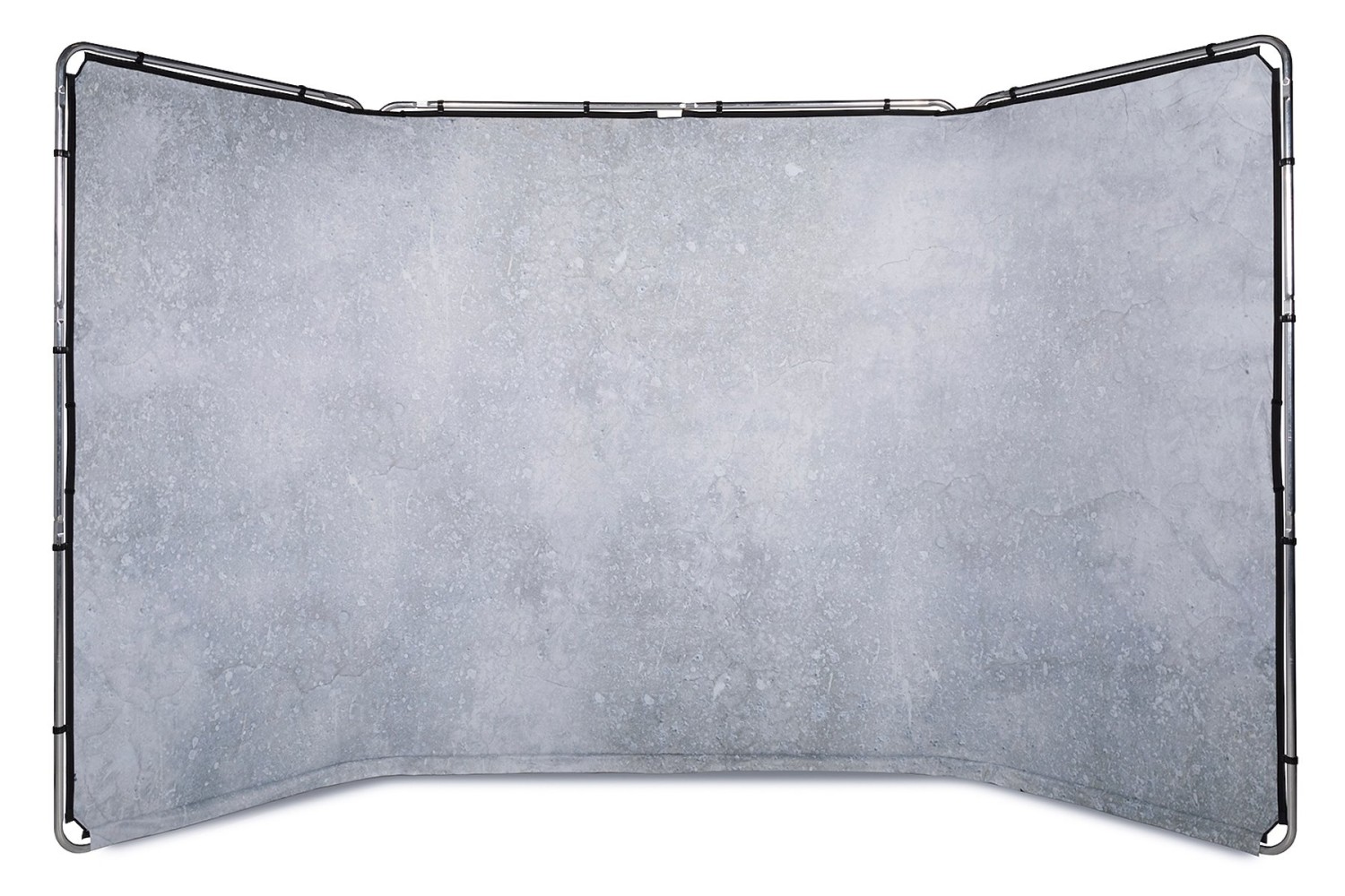 Tento panoramatický systém je vyroben z modulárního hliníkového rámu, který se rychle a bezpečně sestavuje pomocí pevných, snadno připevnitelných spon. Látkový potah je rovnoměrně napnutý přes rám, což zajišťuje hladký a rovnoměrný povrch pozadí bez vrásek nebo prověšení. Jeho samonosná konstrukce eliminuje potřebu dalších stojanů nebo montážních konstrukcí, což jej činí velmi praktickým pro použití jak ve studiu, tak v exteriérech.