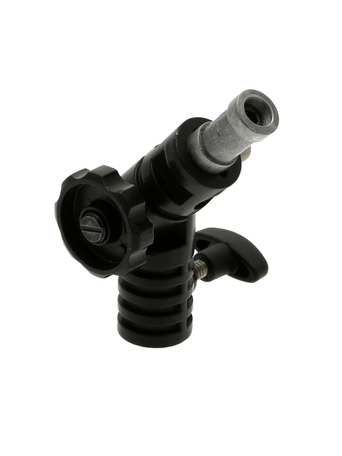 Hlavice je vybavena aretačním knoflíkem s ráčnou, který umožňuje plynulé nastavení sklonu a zároveň zabraňuje náhlému spadnutí nebo nechtěnému pohybu při přemísťování světla. To zajišťuje bezpečnost i přesnost při nastavování a provozu. Součástí balení je spojka, která zajišťuje kompatibilitu s širokou škálou profesionálního osvětlovacího vybavení, což z ní činí univerzální doplněk do každé studiové nebo terénní výbavy.