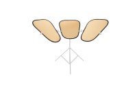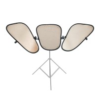 Každý reflektorový panel má oboustranný povrch Sunfire (směs zlata a stříbra) a stříbrný povrch, což nabízí flexibilitu mezi teplými, měkkými tóny a jasnějšími odrazy s větším kontrastem. Nastavitelný systém pantů umožňuje nezávislé umístění každého panelu, což usnadňuje jemné doladění úhlů osvětlení pro různé subjekty a sestavy. Celý systém je navržen s ohledem na přenosnost, lze jej kompaktně složit a vejde se do přenosné tašky, díky čemuž je vhodný jak pro použití ve studiu, tak i v exteriéru. Lehký, ale robustní Triflector MKII je nezbytným nástrojem pro dosažení profesionální kvality osvětlení portrétů.