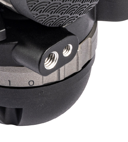 Základna stativu má tři sady portů pro příslušenství se závity 1/4" a 3/8", což usnadňuje stabilní připevnění monitorů, světel a dalších doplňků.
