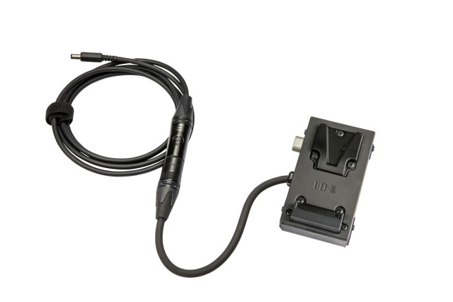 Volitelný napájecí adaptér dovolující napájet motorizované základny Libec LX-ePed/ LX-ePed Studio, Libec LX-ePed 2/ LX-ePed 2 Studio a převaděč MPC-1 pomocí akumulátorů V-Mount (akumulátor není součástí dodávky).