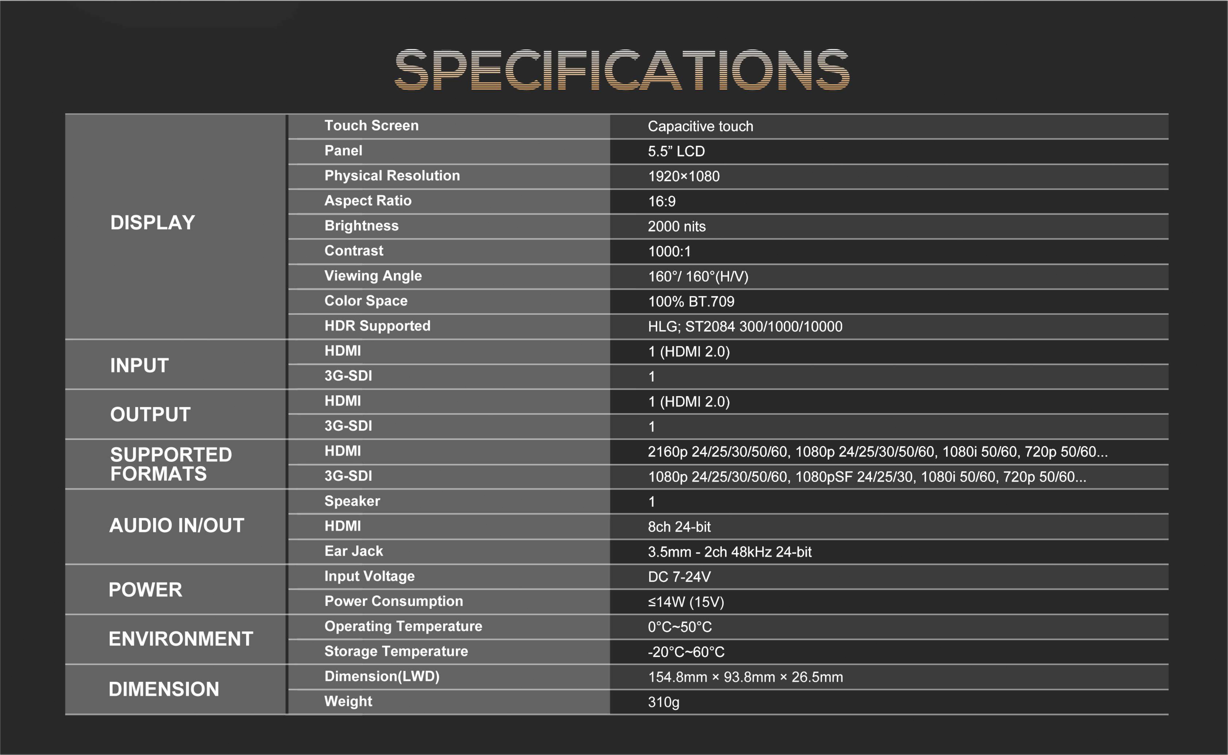 2160p 24/25/30/50/60, 1080p 24/25/30/50/60, 1080i 50/60, 720p 50/60.. |
