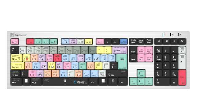Díky speciální klávesnici LogicKeyboard je ovládání aplikace Adobe Photoshop CC mnohem jednodušší a rychlejší. Je ideální pro postprodukční zařízení, profesionální střižny a všechny ostatní, kteří vyžadují, aby všechny vlastní klávesové příkazy byly snadno dostupné z vyhrazené, jasně označené a barevně odlišené klávesnice.